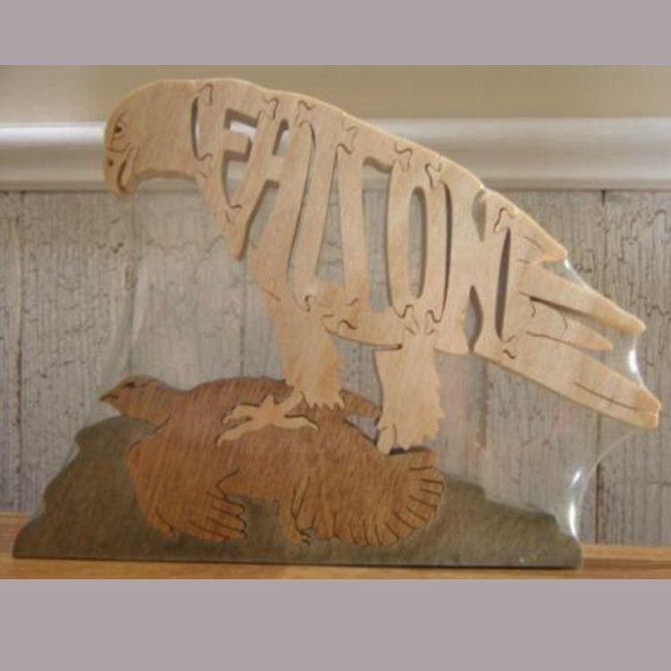 A wooden puzzle of a Falcon.