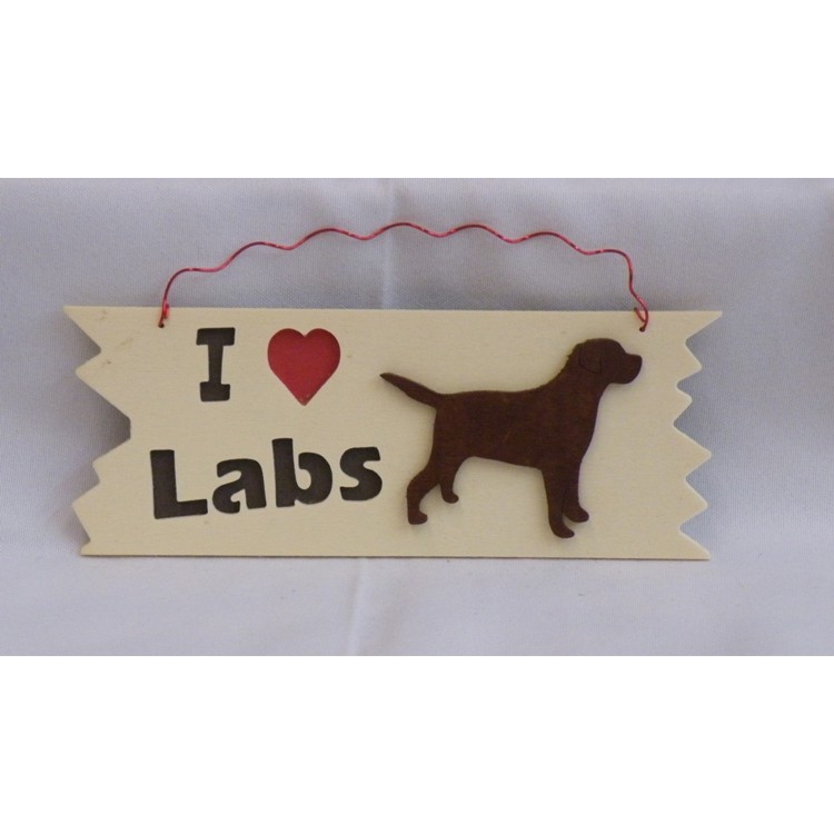 Hanging Banner to show your love for your dog breed 7 - 1/4" long by 2 - 2/3" high Twisted metal hanger attached.