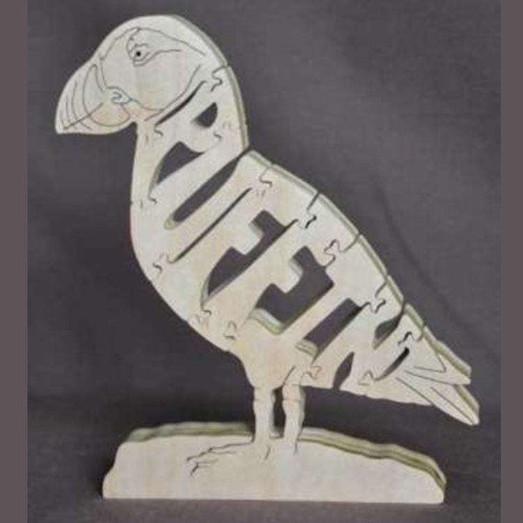 A wooden puzzle of a Puffin.