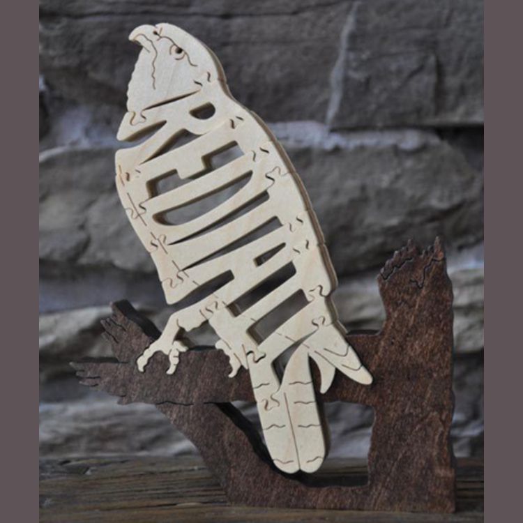 A wooden puzzle of a Redtail Hawk.