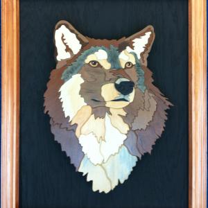 Large painted wood piece of the gorgeuos Wolf